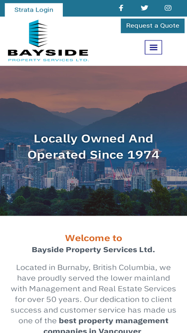 Located in Burnaby, Bayside Property is one of the best property management companies in the Lower Mainland. First founded in March 1974, we provide property management and real estate services.