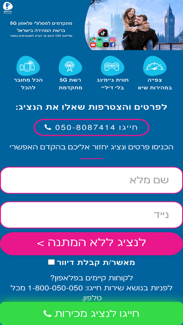 53%רוצים להצטרף לפלאפון? חבילות הסלולר המשתלמות ביותר ברשת המהירה בישראל פלאפון®, כוללים משלוח עד הבית, שירות פלאפון סייבר ועוד דברים שאסור לפספס. פלאפון: