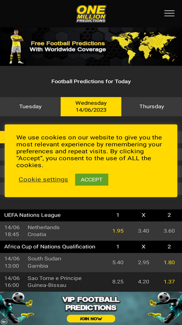 Over 25000 football predictions per month gathered in one extremely fast and useful website. Pro tips 365 days in the year by OneMillionPredictions.com