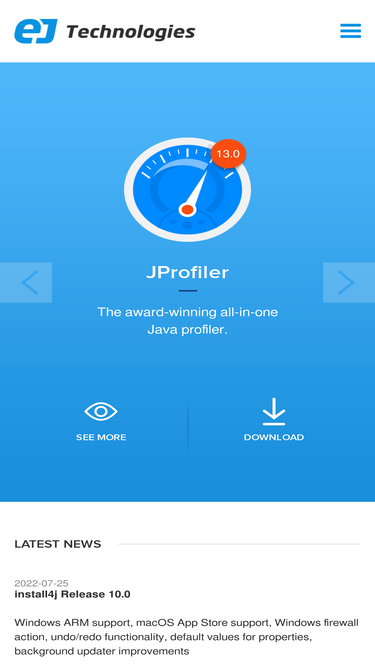 ej-technologies offers best-in-class java development tools: jprofiler is the industry-leading java profiler, install4j is the most comprehensive java installer builder