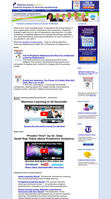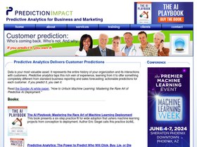 data is your most valuable asset. it represents the entire history of your organization and its interactions with customers. predictive analytics taps this rich vein of experience, learning from it to offer something completely different from standard business reporting and sales forecasting: actionable predictions for each customer. if you predict it, you own it. prediction impact's predictive analytics services direct and target your crm strategy. our services employ predictive modeling to derive customer intelligence -- strategic insights and business imperatives.