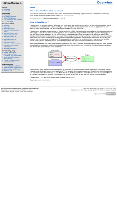 java template engine; a generic tool to generate text output (html, rtf, source code, etc.). practical for servlet-based web applications following the mvc pattern. free.
