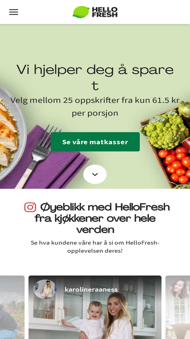 HelloFresh leverer ferske og naturlige ingredienser rett hjem på døren. Lag velsmakende og sunne måltider på null komma niks.