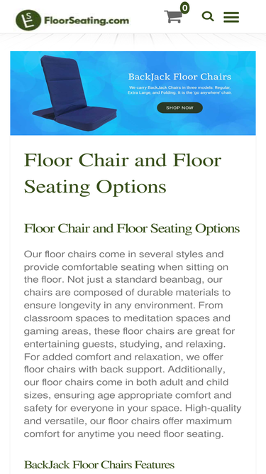 <p>BackJack Regular Chair Cushion <span style="color: #ff0000;">(<strong>BackJack&nbsp;Chair not included</strong>)&nbsp;</span></p> <p>For additional back support, slip this cushion over the back of your BackJack and adjust it to your specifications. &nbsp;The cushion also works as an extra pillow. &nbsp;Chair not included in price. &nbsp;Cushions are available in all colors (see drop-down box). Certain colors may have some degree of color variation from Back Jack Chairs. The material is 100% cotton duck and is not washable.</p> <p><strong>Please note: FloorSeating.com tries to indicate when products are not in stock. There are occasions; however, when stock is depleted between the time you place your order, and the time we process your order. If this occurs, we will try to do the following: inform you of the back order status, estimate the shipping date, and give you the chance to rescind your order</strong></p>