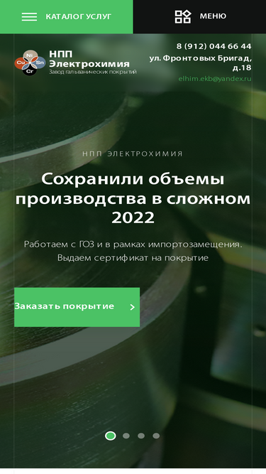 ооо "нпп электрохимия" - услуги по нанесению гальванических и химических покрытий в екатеринбурге. металлообработка. качество по гост и исо, бесплатная доставка, бесплатные пробники. экологичность. 8-912-044-66-44.