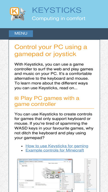 The Inputs tab of the Profile Designer is where you configure which controller(s) you want to use. By default, Keysticks creates a layout and input mappings for a standard gamepad like an Xbox 360 controller, so very often you won't need to change these. However, you might like to change the background image, just for