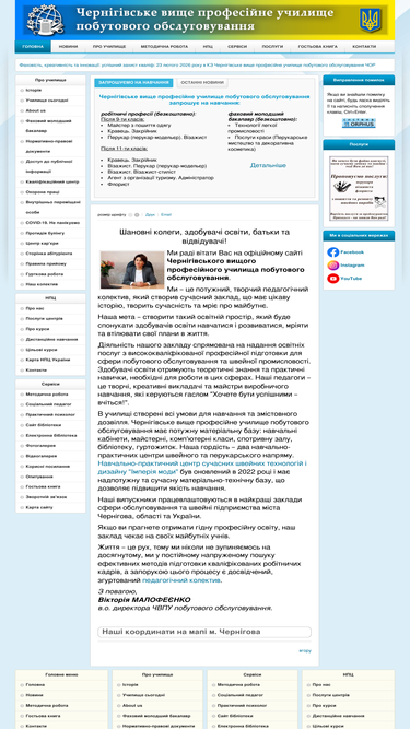 Шановні колеги, здобувачі освіти, батьки та відвідувачі! Ми раді вітати Вас на офіційному сайті Чернігівського вищого професійного училища побутового...