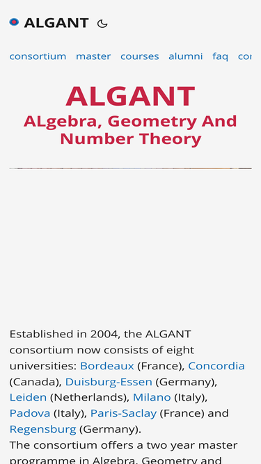 100%Here are some frequently asked questions about the ALGANT Masters Programme. Click or tap the questions for their respective answers. Am I eligible for an ALGANT scholarship or fee waiver? All students with a bachelor in Mathematics or an equivalent academic study of at least 3 years with a special focus on Algebra, Geometry and Number Theory are eligible to apply for a scholarship and fee waivers. The selection of scholarship students is based on academic merit.