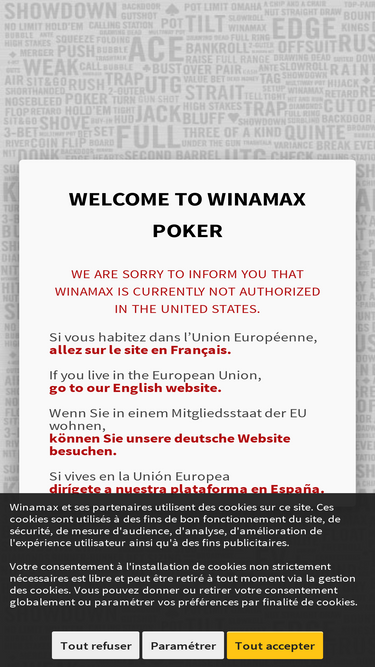 48%Play poker online with Winamax, one of the world.s largest and best online poker rooms. .500 first deposit bonus and 12 daily freerolls!