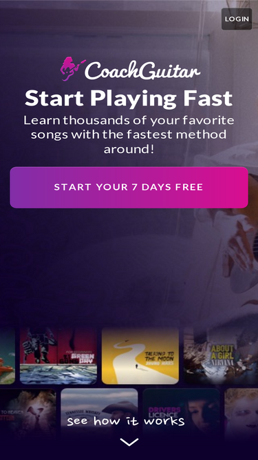 learn to play guitar with coach guitar, a unique visual method without theory, featuring 1000s of your favorite songs for acoustic and electric guitar.