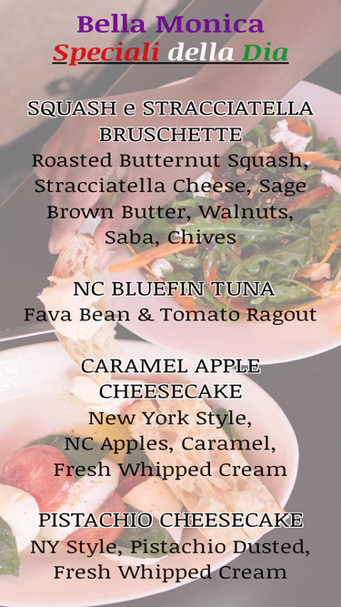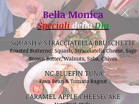Bella Monica Cucina & Vino is family owned and operated by Chef Corbett Monica and Julie Monica. Voted Raleigh's Best Italian Restaurant. It's an extension of Nana's table. A place where the neighborhood gathers to relax at the wine bar, dine on delicious lasagne, spaghetti, meatballs, or pizza, and share in "La Dolce Vita".