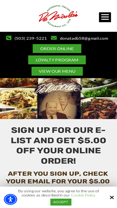 100%Contact DeNicola's Italian Restaurant in Portland. Dining, catering & banquet room. Easy parking and transit access. Open daily for dinner. 503-239-5221.