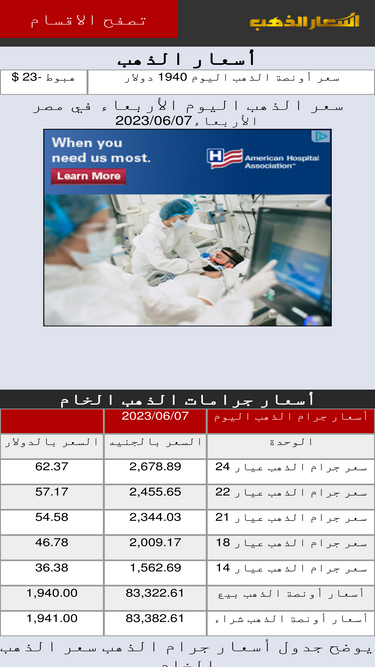 سعر الذهب في مصر اليوم مباشر وأسعار الذهب بالجنية المصري وأسعار الذهب بالدولار الان وأسعار الذهب في محلات بيع الذهب محلات الصاغة