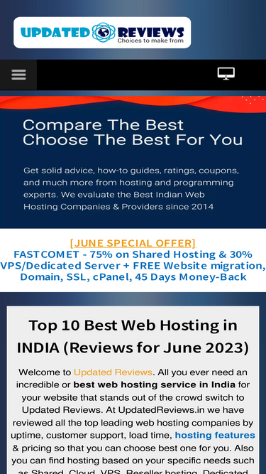 100%UpdatedReviews.in recommend and suggest the best rated and top Web hosting service providers globally, You need a reliable and best web hosting service provider for a blog, e-commerce website or just a small business website, That’s why we have done the hard effort researching these top rated providers and made it easy for you to review the different hosting options, so visit our website and select the suitable web hosting service provider for your website.