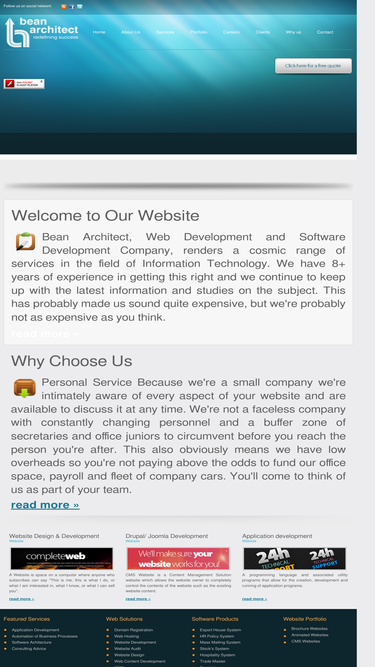 bean architect web design company offering you best web design, web development services, ecommerce web design, web portal development, internet marketing, seo marketing all over india and abroad. we are serving global clients with world class services, leading web design and development company specialized in professional & innovative website design, web development, e-commerce solutions, seo, graphic designing & other expert it outsourcing services. get started with affordable packages or hire dedicated resources in navi mumbai, india.