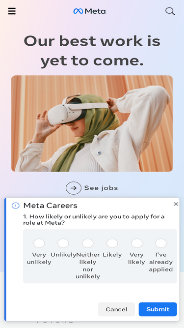 Meta's mission is to to build the future of human connection and the technology that makes it possible.