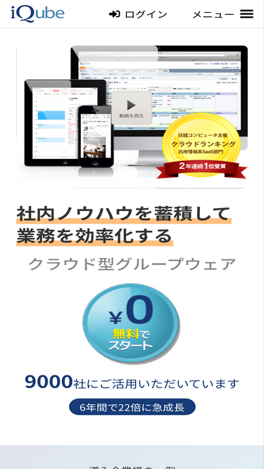 95%無料グループウェア「iqube(アイキューブ)」は、社内ノウハウの蓄積に特化したクラウド型グループウェアです。直感的なインターフェースで社内の情報共有およびコミュニケーション活性化を促進し、業務効率改善を実現します。
