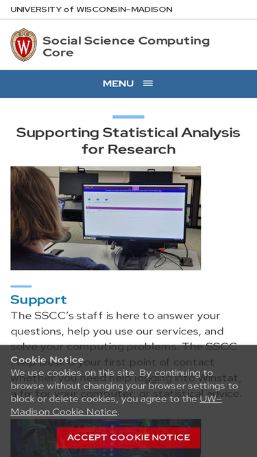 SSCC serves the following member agencies: Center for Demography and Ecology • The Center for Demography of Health and Aging • The Center on Wisconsin Strategy • Economics • Institute on Aging • Institute for Research on Poverty • School of Human Ecology • School of Pharmacy • Sociology • University of Wisconsin Survey Center •