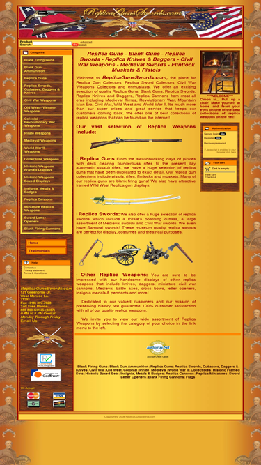 replica guns, replica swords, blank guns: a collection of replica guns, swords, daggers, knives, collectible weapons from the civil war, old west, pirate, colonial, world war ii, revolutionary war, medieval, wild west blank firing guns and others for theatrical, reenactments and collectors