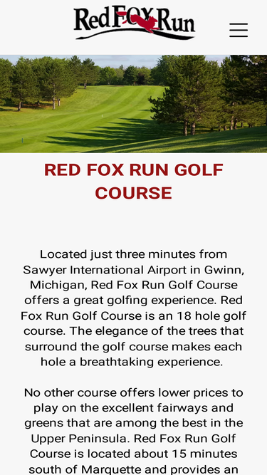 100%Located just three minutes from Sawyer International Airport in Gwinn, Michigan, Red Fox Run Golf Course offers a great golfing experience. Red Fox Run Golf Course is an 18 hole golf course. The elegance of the trees that surround the golf course makes each hole a breathtaking experience.