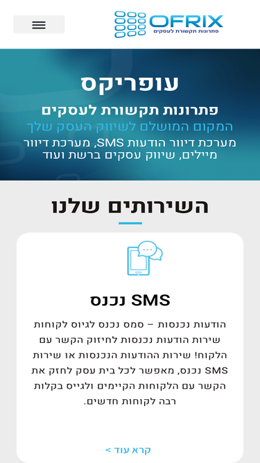 עופריקס תקשורת מתמחה בפתרונות תקשורת לעסקים: מערכת דיוור הודעות SMS, SMS לעסקים, מערכת דיוור מיילים, פרסום ברשת