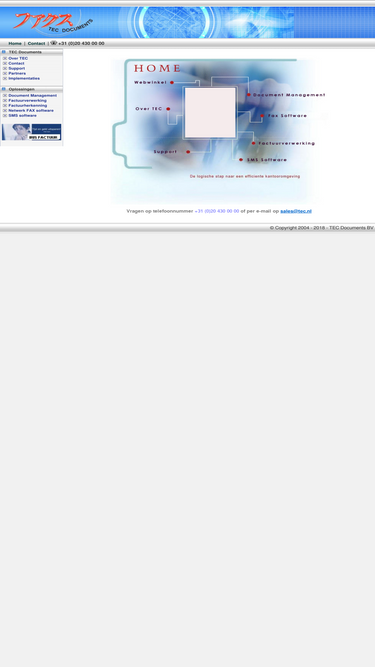 100%tec documents is gespecialiseerd in document management systems, faxsoftware, system monitoring en e-mail beveiliging. tec documents levert en ontwikkelt zowel software als hardware met de best mogelijke service. telefoon +31 (0)20 430 00 00.