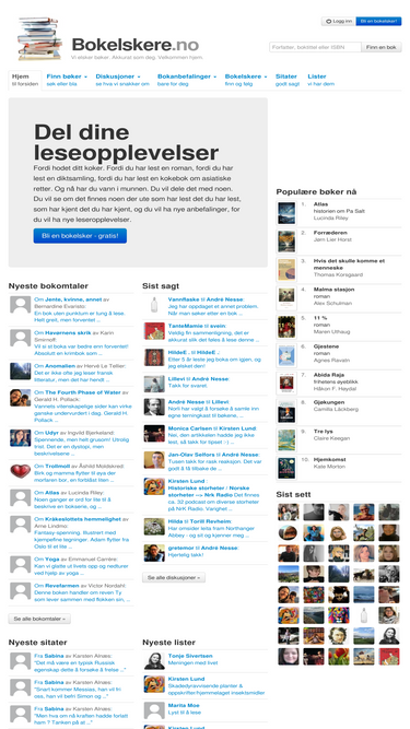 61%bokelskere.no er et åpent, vennlig og gratis nettsamfunn for folk som liker bøker. her kan du lage din egen boksamling på nett, trille terningkast, skrive omtaler og snakke med andre om bøker.