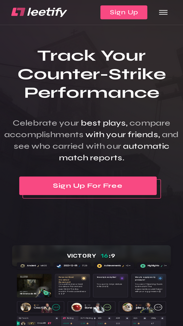 compare your performance to your friends with detailed match reports, aim and utility ratings, highlights, and more.