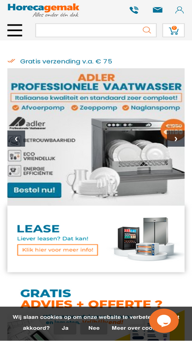 20% korting op 1e online order ✓ +13.000 artikelen ✓ gratis levering mogelijk ✓ geld terug garantie ✓ laagste prijsgarantie ✓ professionele horeca apparatuur ✓ sinds 1983 ✓