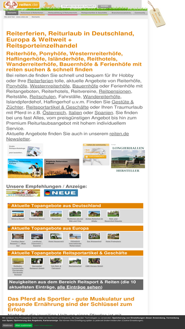 90%reiten angebote für pferd & reiter mit reiterferien, reiturlaub, reiterreisen, reiterhof, reiterhöfe, ponyhof, ponyhöfe, reitabzeichen, ...