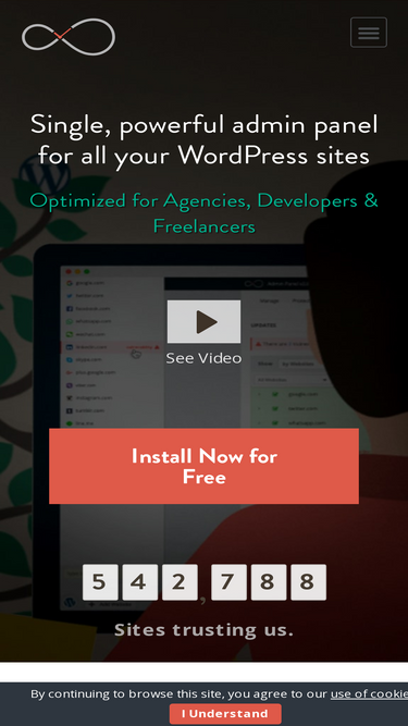 100%InfiniteWP is free self-hosted, to manage multiple WordPress sites. It simplifies taking backups, securing, managing WordPress with a single click.