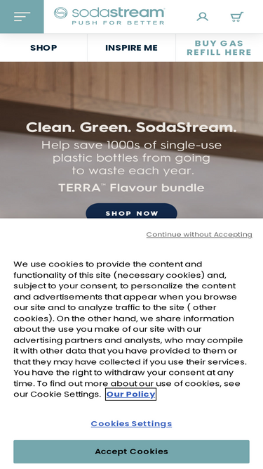 Notice last updated: 04/2023 1. Information on how we use cookies Our SodaStream website (“website” or “site”) uses various cookies which allow us to distinguish you from other users of our website, which helps us to provide you with a good experience when you browse our website and also allows us to improve our site. We use cookies to provide the content and functionality of this site and, with your permission, to personalize the content and advertisements that appear when you visit our site and to analyze the traffic on the site. In addition, we share information about your use of our site with our advertising partners and analysts, who may combine this information with other data that you provide to them or that they have collected when you use their services. You have the right to withdraw your consent to cookies at any time. You do not need to allow cookies to visit most of the website. However, enabling cookies may allow for a more tailored browsing experience and is required for certain parts of the website to work. In the majority of cases, a cookie does not provide us with any of your personal data. For further information about this Cookie Policy, please contact us at privacy@sodastream.com. You can change the cookie settings that will be placed when you visit our website by changing the settings on your browser or by visiting the Privacy Preference Centre by clicking on the Cookie settings button at the bottom of this website. 2. Key concepts A cookie is a small file of letters and numbers that we store on your browser or the hard drive of your computer if you agree. Cookies contain information that is transferred to your computer's hard drive. Cookies vary by type: First-party cookies, which are set by a website that is being visited by the user at the time (e.g. cookies placed by www.sodastream.com). Third-party cookies, which are set by a domain other than that of the website being visited by the user. If a user visits a website and another entity s