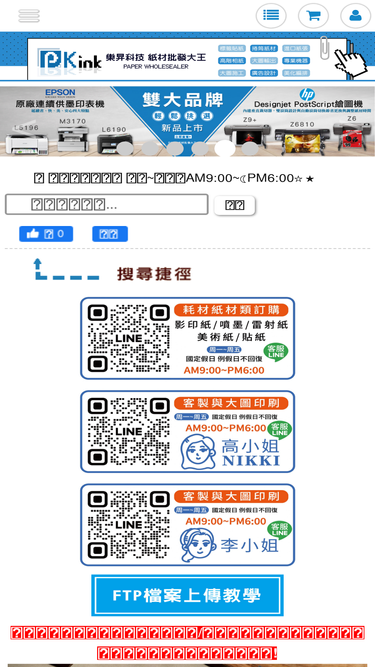 87%pkink紙材批發大王提供,油畫布,相片紙,冷裱膜,美術紙,銅版紙,透明貼紙,銅板貼紙,大圖輸出,epson印表機,冷裱機,a4標籤貼紙,代客印刷,噴墨紙,畫布,大圖輸出紙,防水pp,防水相紙,大圖機,客製商品服務,平面設計,施工服務,印刷服務,超商取貨貼,寄件貼紙。 我們在一般印表機專售已有多年以上的專業技術與操作經驗,以純熟的技術、嚴格的品質管理、合理的價格提供給客戶完善的產品和滿意的服務。