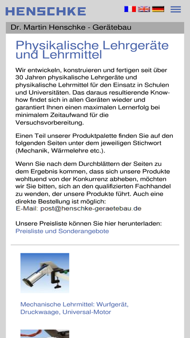 henschke gerätebau: lehrgeräte zur mechanik, thermodynamik, elektrizität, optik und interferometrie