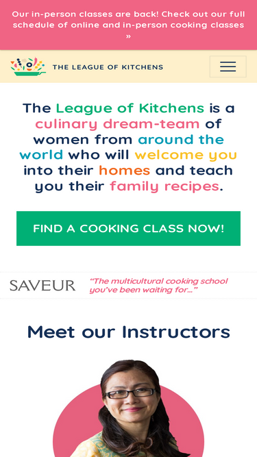 The League of Kitchens is a culinary dream-team of women from around the world who will welcome you into their homes, teach you their family recipes, and inspire you with their personal stories.