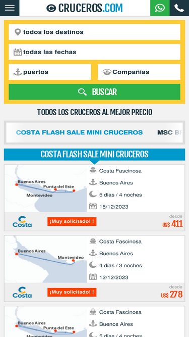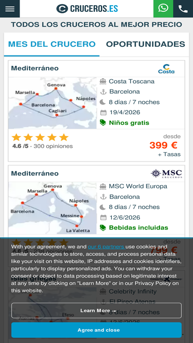 Embarquen sobre una de nuestras 9000 ofertas y promociones de crucero entre má de 30 compañías marítimas como Costa Cruceros, MSC Crucero, Royal Caribbean, Croisieuropa, Hurtigruten... en mediterráneo, ccaribe, Spitzberg, Danubio, Cuba... Consejos, y presupuestos gratis