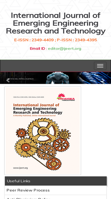 international journal of emerging engineering research and technology (ijeert) is an international journal which aims at meeting all the needs of diverse sections of people across the globe. it caters to the needs in the areas of engineering and technology.
