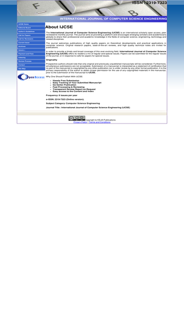 international journal of computer science engineering (ijcse) is an open acess peer to peer review journal started on 2012. ijcse is published bi-monthly.