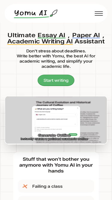 82%Elevate your academic writing with Yomu - the best AI tool for essays, papers, and theses writing and research work | Refund Policy