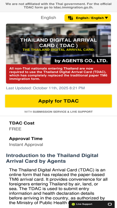 Thailand Digital Arrival Card ( TDAC ) is a new digital system replacing the paper TM6 immigration form for all foreign nationals visiting Thailand. The online form must be submitted before arrival to streamline the entry process.