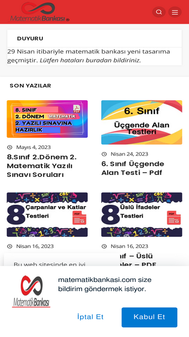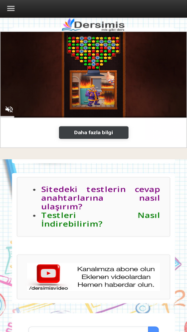 Matematik Bankası tarafından hazırlanan testlerin videolu çözümleri artık sizlerle buluşuyor. Sitemiz kurulduğu günden bugüne ücretsiz olarak sunduğu PDF testlerin artık çözüm videolarını çekiyor. Sınıf bazlı ayırdık. Var olan testlerin çözümlerini konular geldikçe çekip güncelleyeceğiz. Bu süreçte yeni testlerin yazımları da devam edecek. outube kanalımıza buradan ulaşabilirsiniz. Kanalımıza abone olursanız videolardan zamanında haberdar olabilirsiniz. Bazı videoların