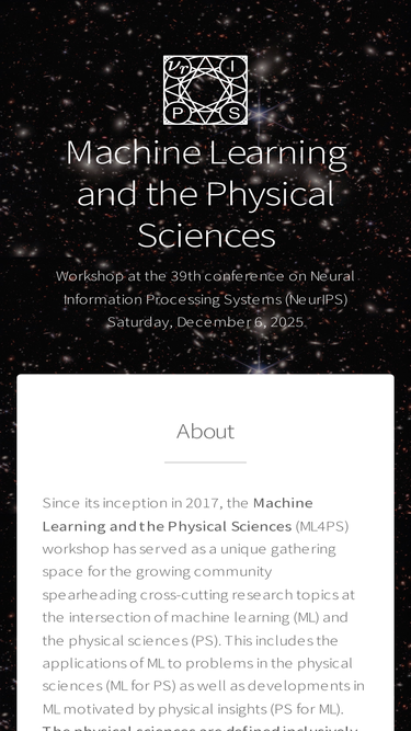 84%website for the machine learning and the physical sciences (mlps) workshop at the 35th conference on neural information processing systems (neurips)