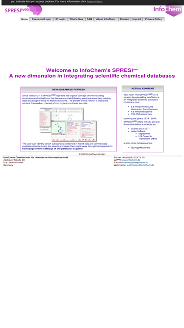 spresiweb developed by infochem combines a large chemical structure and reaction database with links to many information sources.