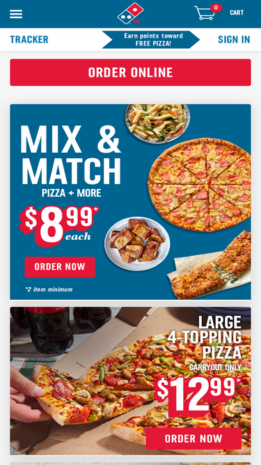 order pizza online for carryout or delivery from domino's pizza canada. view domino's menu, find your local store location or track your order.