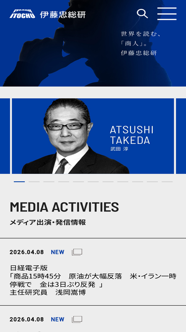 伊藤忠総研は伊藤忠グループのシンクタンクとして幅広い役割を担い、現場視点で、ビジネス・シーンの意思決定を支援します。