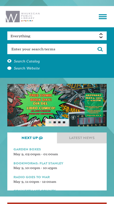 Return Book Drops There are two book drops at the Main Library. They are located at the front and rear of the Library. There is also a book drop in the parking lot at the Hinkston Park Fieldhouse. Parking Main Library Three hours of free parking are provided by the City of Waukegan in the City Gara1