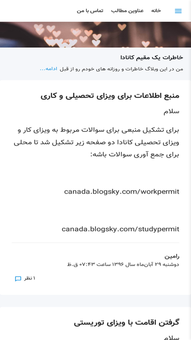 من در این وبلاگ خاطرات و روزانه های خودم رو از قبل از رفتن به کانادا تا زندگی در کانادا برای شما نقل میکنم .