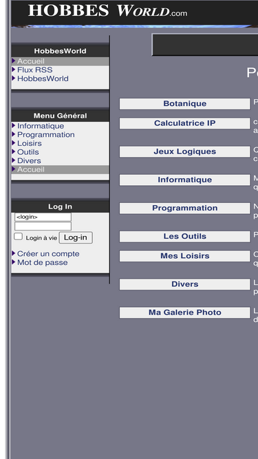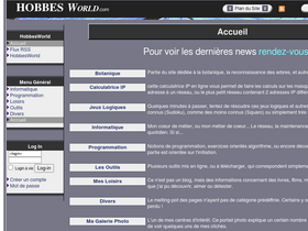 page d'accueil du site hobbesworld.com, avec tous les détails des informations que vous pouvez y trouver.