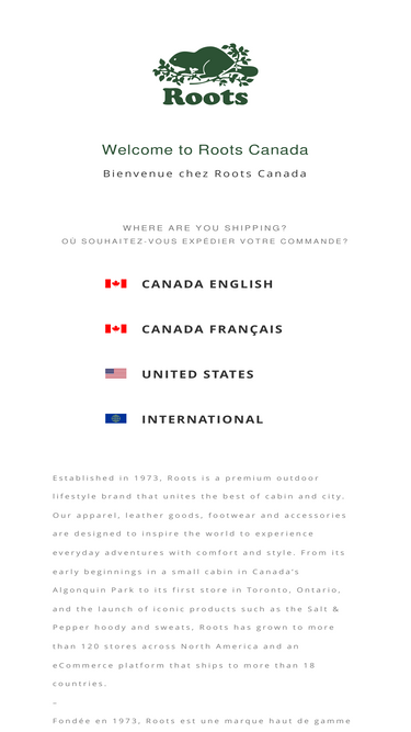 enjoy free shipping on all orders over $70 at roots.com