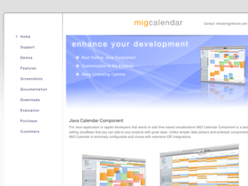 100%java calendar, a java calendar component, calendaring applications, java components, planning, date picker, mig java calendar is a java component for creating advanced calendaring applications and event-activity visualizations. screen shots, evaluations and documents available at the product site